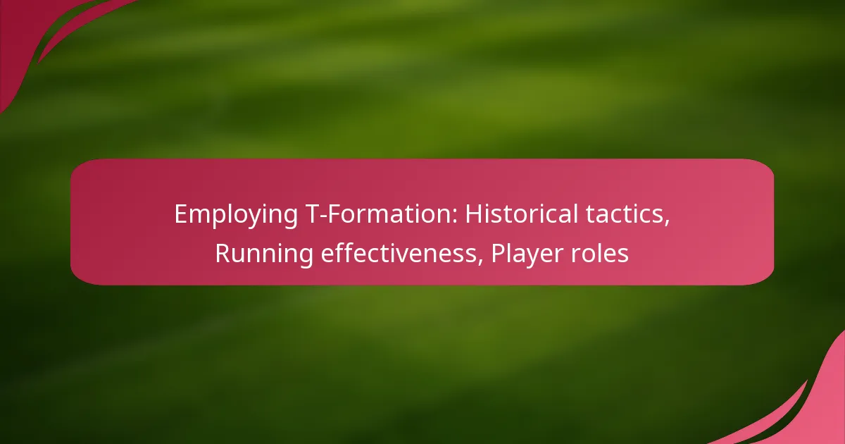 The T-Formation is a strategic football alignment that emphasises specific player roles to maximise team effectiveness. Each position has distinct responsibilities that contribute to both offensive and defensive plays, making understanding these roles crucial for successful implementation.