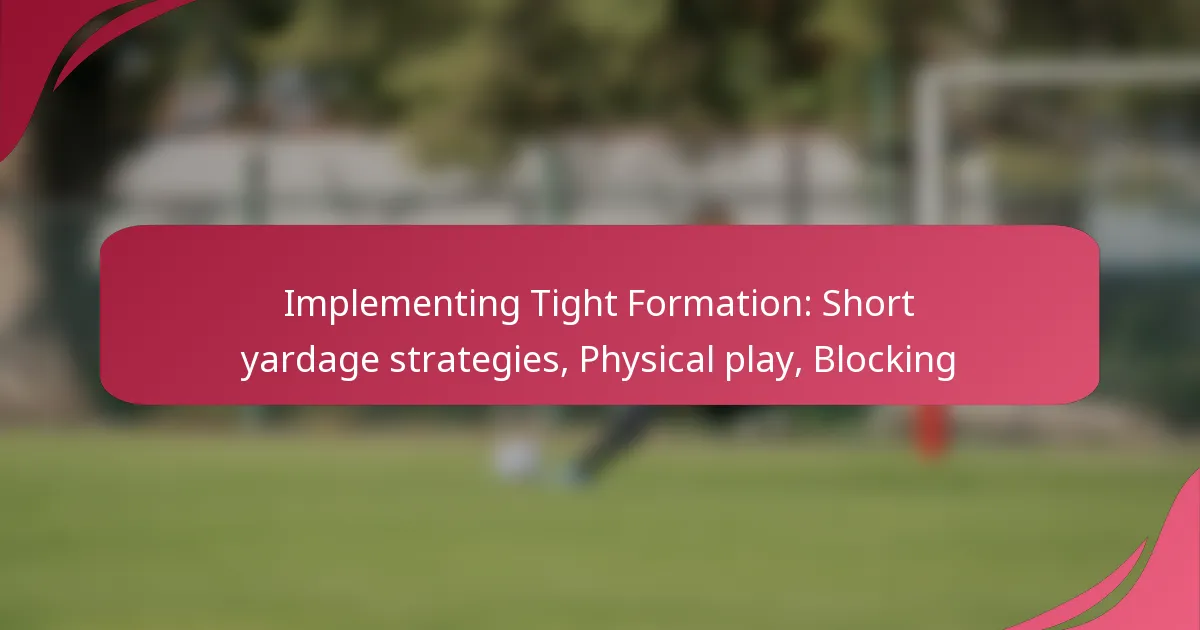 Implementing a tight formation in football involves positioning players close to the line of scrimmage, which enhances physical play and blocking effectiveness. This strategy is particularly advantageous in short yardage situations, where gaining crucial yards is essential. By focusing on player roles and situational analysis, teams can exploit defensive weaknesses and improve their chances of success on the field.